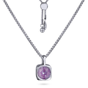 Изготовлено из ювелирного сплава на основе латуни с гальваническим покрытием родием. Изделие украшают кристаллы SW пурпурного цвета диаметром 8мм. Размер кулона 1.5х1см. На цепочке установлен бегунок регулировки длины. Максимальная длина 70см.