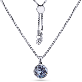 Изготовлено из ювелирного сплава на основе латуни с гальваническим покрытием родием. Изделие украшают кристаллы SW цвета светлый сапфир диаметром 8мм. Размер кулона 1.5х1см. Длина 70см. На цепочке установлен бегунок регулировки длины.