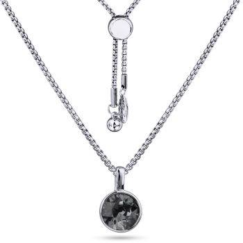 Изготовлено из ювелирного сплава на основе латуни с гальваническим покрытием родием. Изделие украшают кристаллы SW темно-серого цвета диаметром 8мм. Размер кулона 1.5х1см. Длина 70см. На цепочке установлен бегунок регулировки длины.