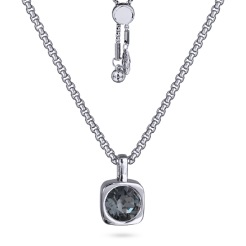Изготовлено из ювелирного сплава на основе латуни с гальваническим покрытием родием. Изделие украшают кристаллы SW темно-серого цвета диаметром 8мм. Размер кулона 1.5х1см. На цепочке установлен бегунок регулировки длины. Максимальная длина 70см.
