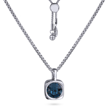 Изготовлено из ювелирного сплава на основе латуни с гальваническим покрытием родием. Изделие украшают кристаллы SW темно-синего цвета диаметром 8мм. Размер кулона 1.5х1см. На цепочке установлен бегунок регулировки длины. Максимальная длина 70см.