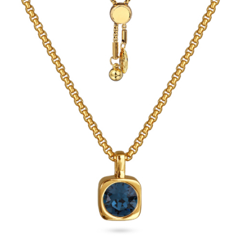 Изготовлено из ювелирного сплава на основе латуни с гальваническим покрытием золотом. Изделие украшают кристаллы SW темно-синего цвета диаметром 8мм. Размер кулона 1.5х1см. На цепочке установлен бегунок регулировки длины. Максимальная длина 70см.