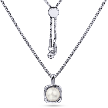 Изготовлено из ювелирного сплава на основе латуни с гальваническим покрытием родием. Изделие украшает Майорка белого цвета диаметром 8мм. Размер кулона 1.5х1см. Длина 70см. На цепочке установлен бегунок регулировки длины.