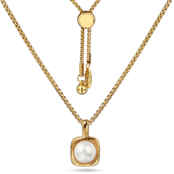Изготовлено из ювелирного сплава на основе латуни с гальваническим покрытием золотом. Изделие украшает Майорка белого цвета диаметром 8мм. Размер кулона 1.5х1см. Длина 70см. На цепочке установлен бегунок регулировки длины.