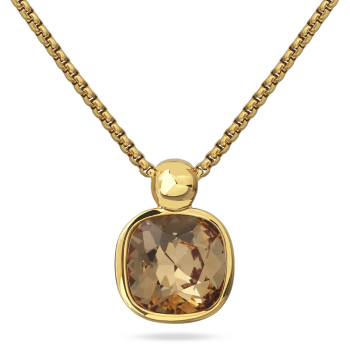 Изготовлено из ювелирного сплава на основе латуни с гальваническим покрытием золотом. Изделие украшают кристаллы SW цвета мед диаметром 12мм. Длина цепочки 50-55см.
