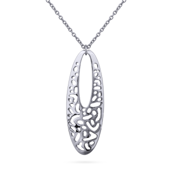 Изготовлено из ювелирного сплава на основе латуни с гальваническим покрытием родием. Длина цепочки 85см. Замок-карабин с удлинителем 5см. Длина кулона 5.3см.