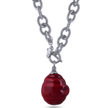 Кулон Якорь (Майорка 18мм вишневая; покрытие родий) 50см, Есть комплект