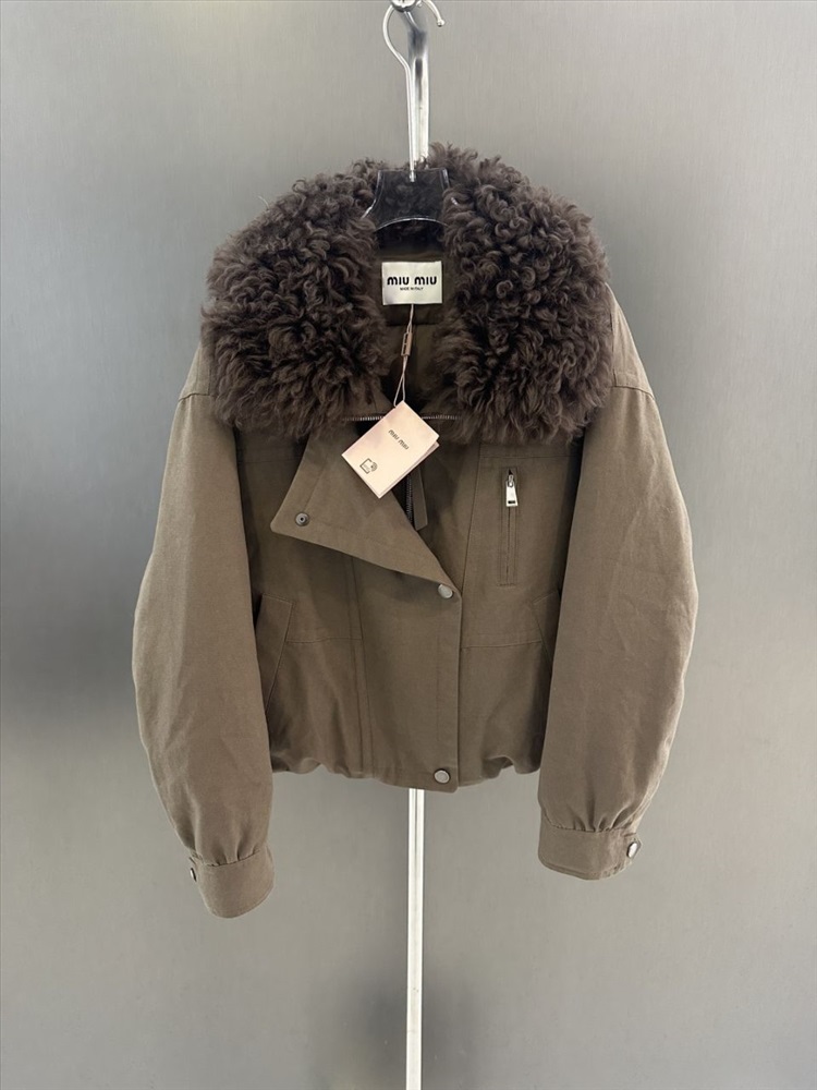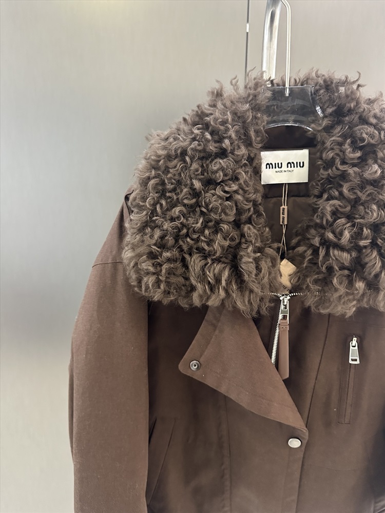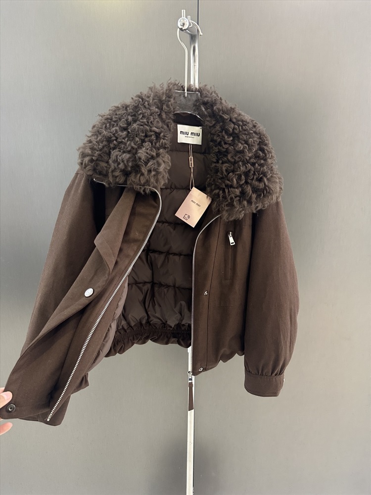 Осенне-зимняя новая куртка из высококачественного гусиного пуха Miumiu Воротник из импортного шерстяного меха, внутренняя часть которого состоит из 90% белого гусиного пуха, наполненного высококачественной атмосферой SML (длина 56, обхват груди 126, размер L
