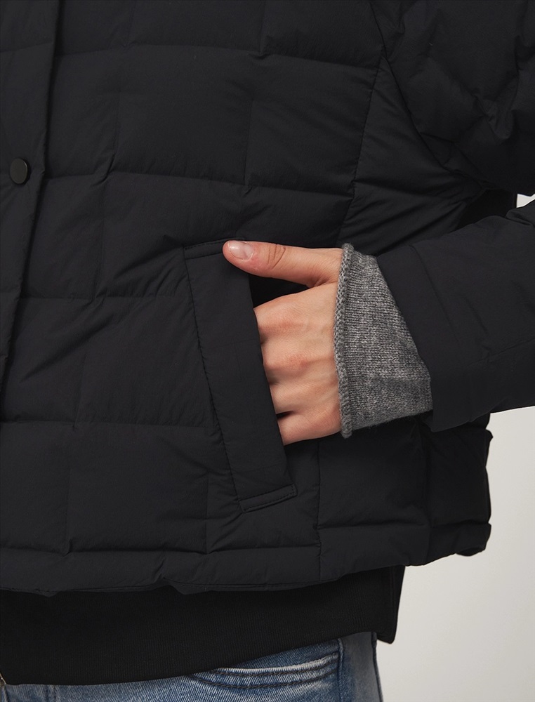 Видео: https-//hassfashion.ru/upload/iblock/0b6/b92xlp6fbznzxdlkpu21bb3z54mh1e3k.mp4 осень-зима А: 100% Полиэстер В: 90% Утиный пух, 10% Утиное перо С: 100% Полиэстер Стеганая куртка полуприелающего силуэта О-образной формы, с рукавами по типу реглан. По передней части застежка на кнопки и боковые врезные карманы с листочкой. Трикотажная подкладка застегивается на молнию. Стеганая ткань с наполнителем из утиного пуха (90%) и пера обеспечивает тепло и защиту от ветра. Представлена в бежевом и черном цвете.
