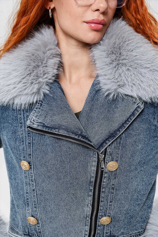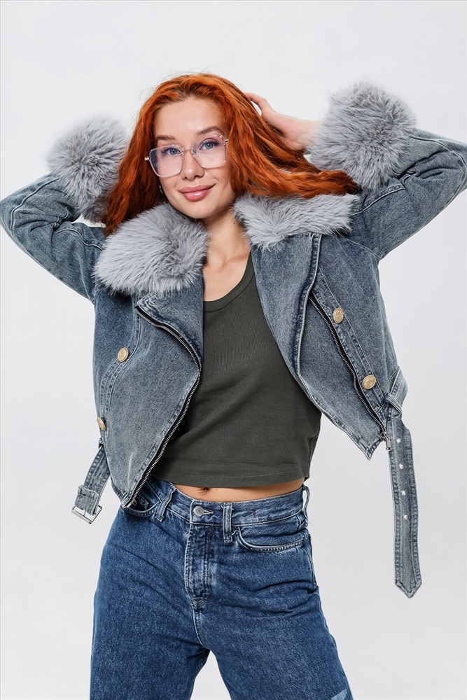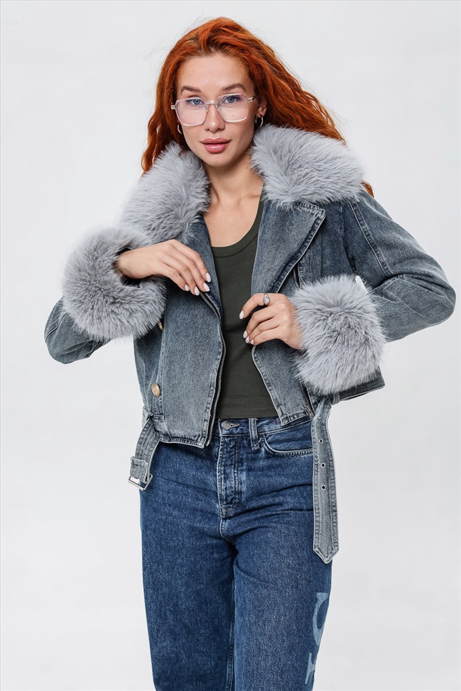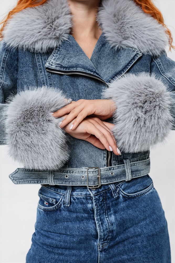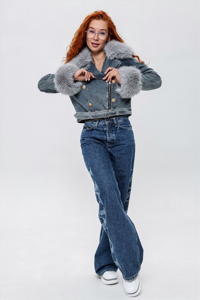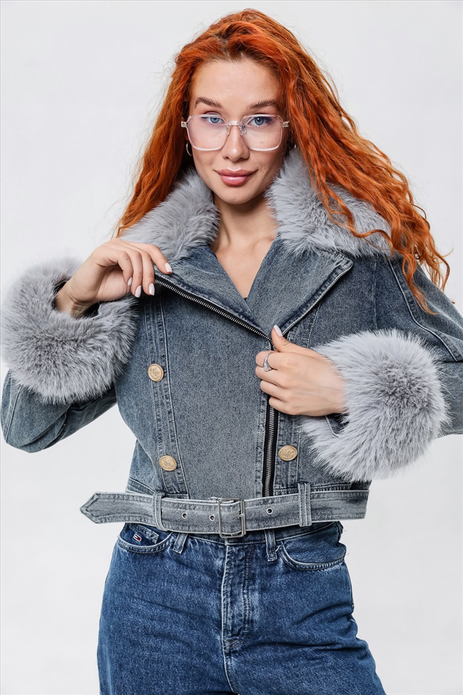 Застежка: молния Женская укороченная куртка, сезон весна-осень. Мех отстегивается и куртка превращается в утепленную джинсовку. Отличное решение на межсезонье. Внутри подкладка.