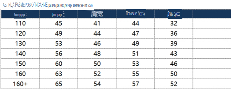 Размер: 110, 120, 130, 140, 150, 160, 160+