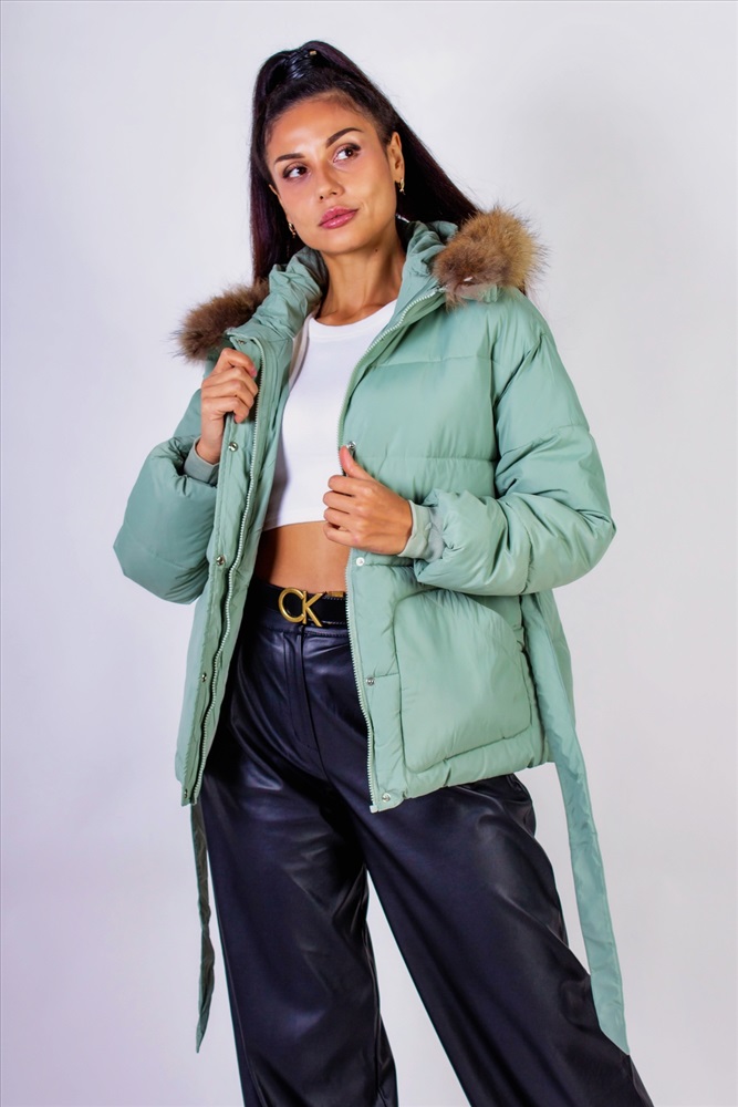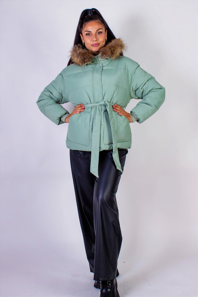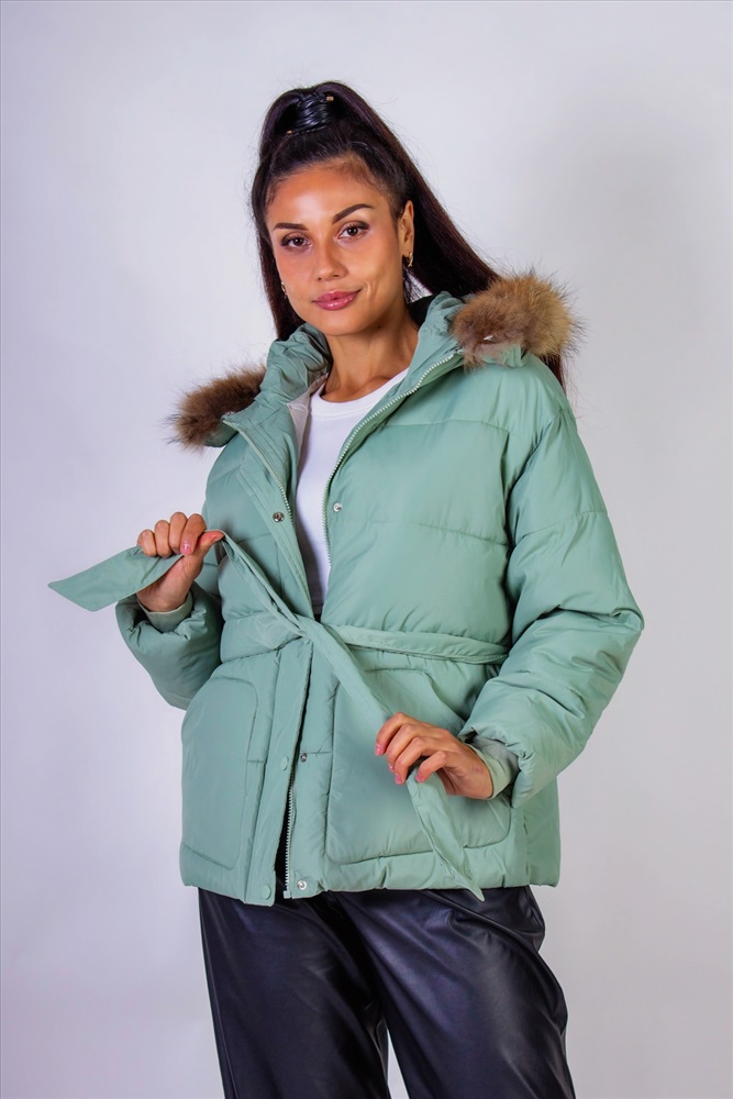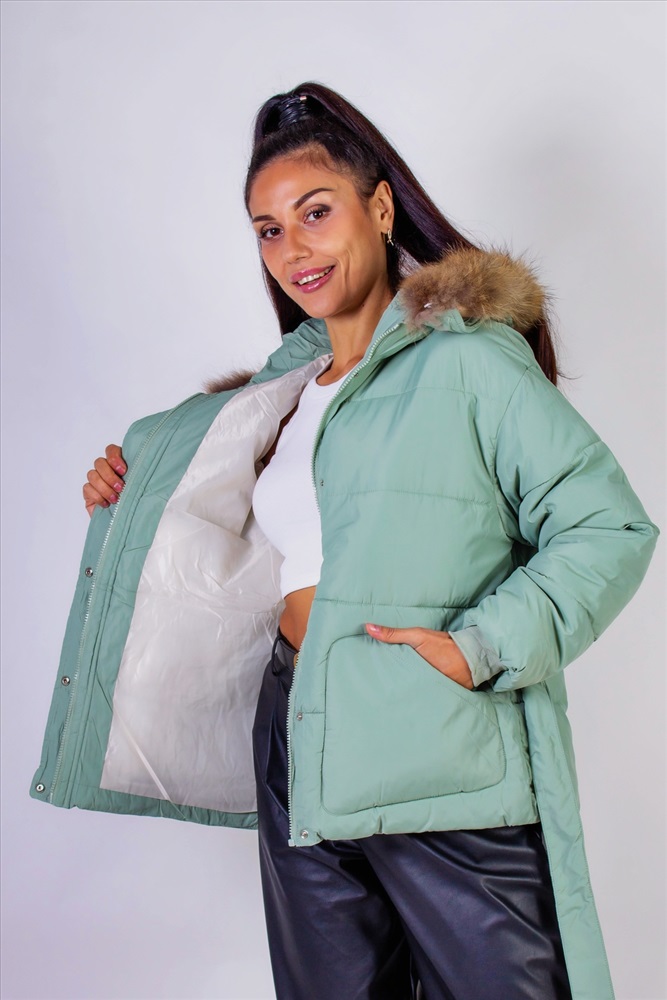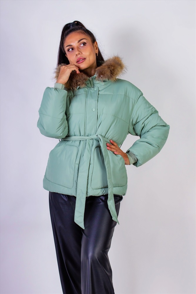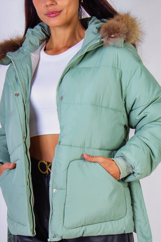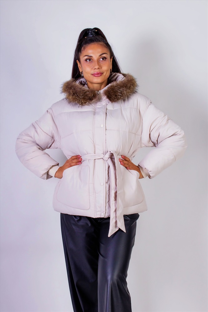 Куртка на поясе с капюшоном подойдет для демисезонного ношения или для теплой зимы. Она станет незаменимым элементом вашего гардероба в прохладное время года. Эта стильная куртка сочетает в себе элегантность и функциональность, идеально подходя как для городских прогулок, так и для школы, работы или отдыха. Куртка защищает от ветра и дождя, обеспечивая вам комфорт и теплоту в холодные дни. Внимание уделено и деталям: опушка из натурального меха может быть легко отстегнута, что позволяет вам адаптировать куртку под любые погодные условия и ваш стиль. Застежка на молнии с дополнительной планкой на кнопках обеспечивает дополнительную защиту от холода и ветра. Рукава с трикотажными манжетами предотвращают потерю тепла, а два аккуратных кармана позволят удобно хранить мелочи. Пояс, который можно регулировать по настроению и фигуре, создает актуальный силуэт песочных часов, подчеркивая ваши достоинства и добавляя уверенности в каждом шаге. Эта куртка станет отличным выбором для женщин, которые ценят комфорт и стиль. Она легко сочетается с различными элементами гардероба: будь то джинсы, юбки или платья. Вы можете легко создать как повседневный, так и более строгий образ, добавив подходящие аксессуары.