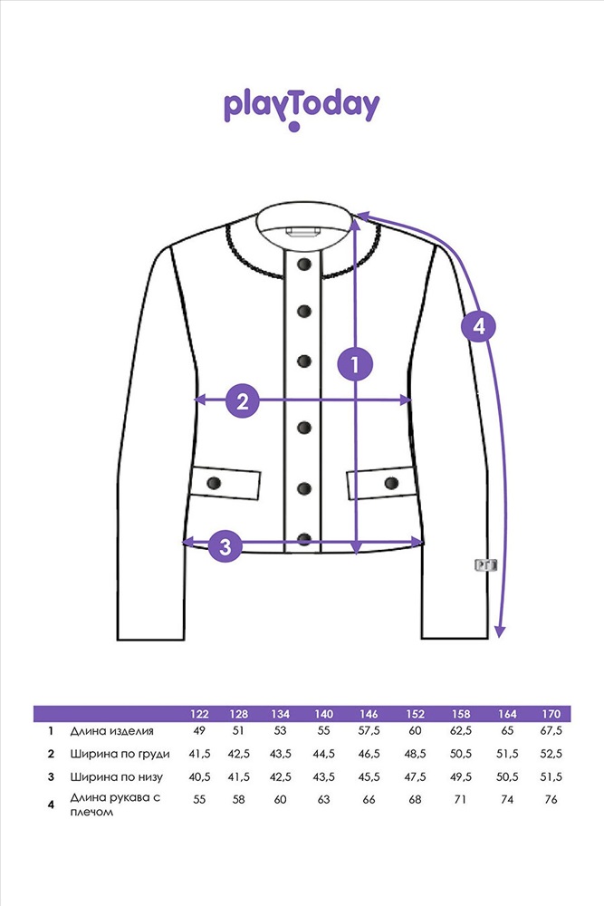 Производитель: PLAYTODAY ID товара: 1187735 Состав: Верх- 100% Полиэстер; Подкладка- таффета; Наполнитель- 150 g/m2 Сезон: Демисезон Длина: Средняя Фасон: Прямой Рукав: Длинные Вид застежки: Кнопки Тип карманов: Прорезные Утеплитель: с утеплителем, 150 g/m2 Стиль: Повседневный Реком. темп. режим: до -5ºС Страна бренда: Германия Страна производства: Китай