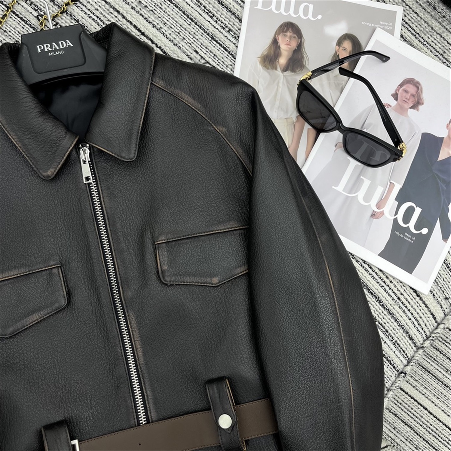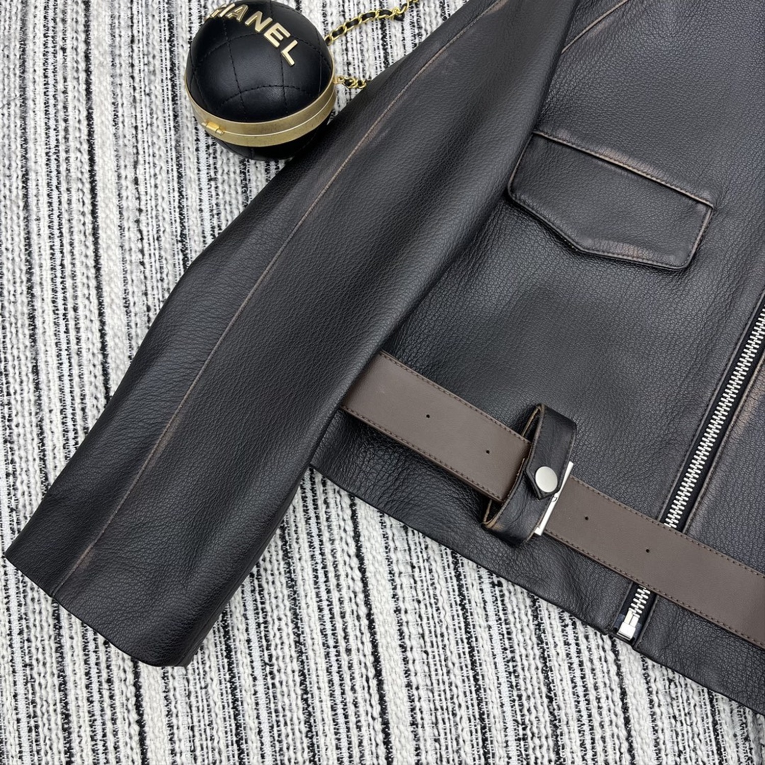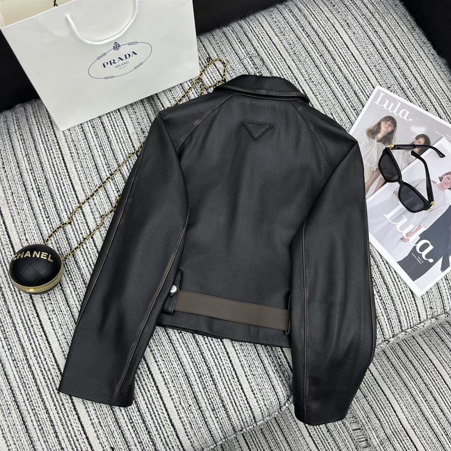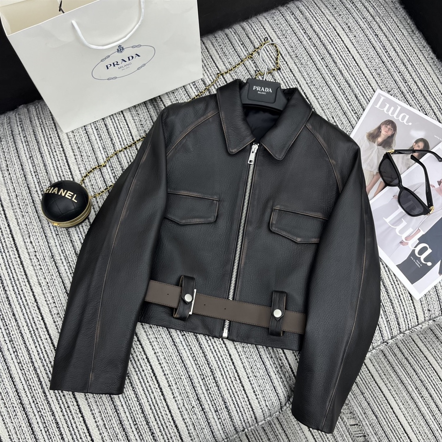 Куртка с длинными рукавами и лацканами из овчины, кожаным ремнем по индивидуальному заказу. Высококачественное качество YB1:1 по индивидуальному заказу