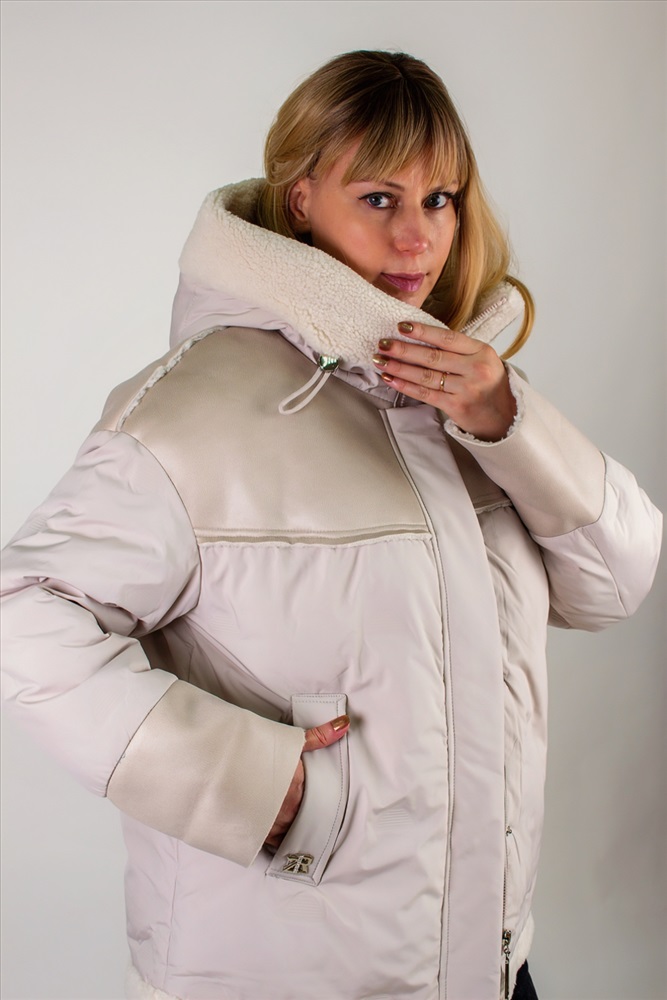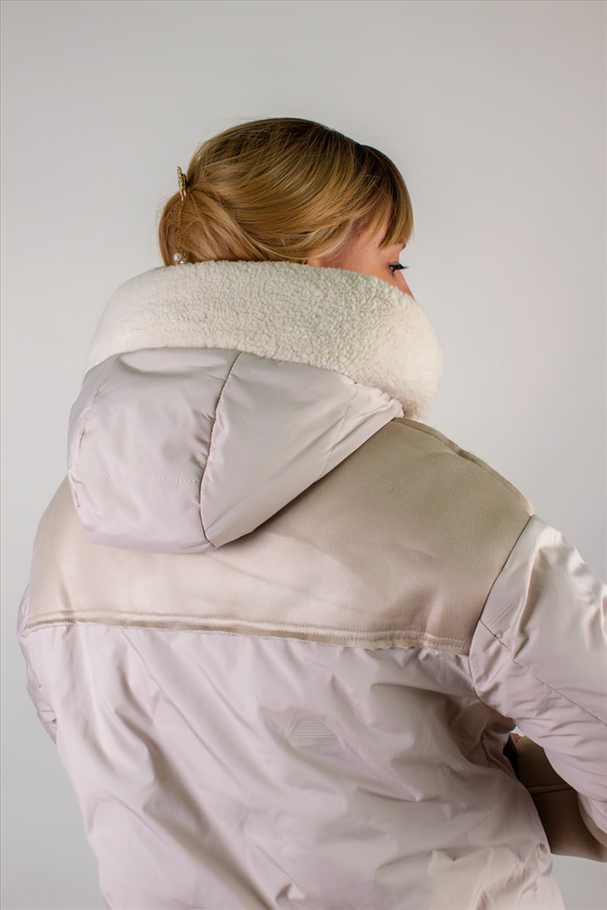 Утеплённые замшевые вставки с меховой основой на низе рукавов, которые можно отвернуть и кокетке подчёркивают благородство и выделяют форму.