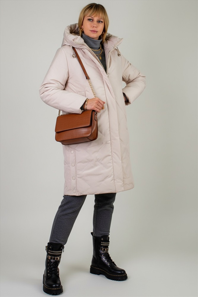 Модель представлена в трёх благородных оттенках: нежная светлая сирень, подчёркивающая женственность и лёгкость образа; универсальный светло-бежевый и глубокий тёмно-бежевый,- гармонируют с любыми аксессуарами и обувью. Элегантный, современный крой Арт.316 продуман до мелочей: по бокам снизу расположены разрезы на кнопках они позволяют легко сесть в автомобиль или зайти в городской транспорт.