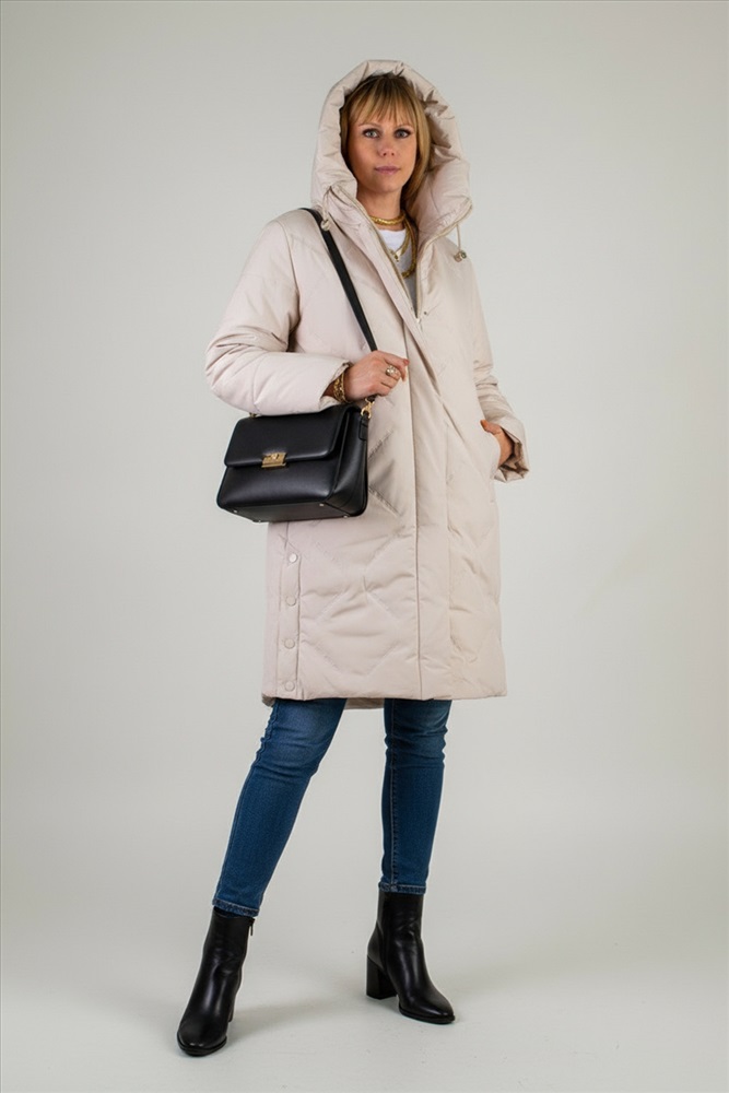 Особое внимание в дизайне уделено капюшону с высоким воротником-стойкой на удобных фиксаторах: он надёжно защитит от ветра и метели, не стесняя движений. Застёжка-молния дублируется утеплённой планкой на кнопках, что исключает продувание и придаёт модели благородный вид. По бокам предусмотрены два вместительных кармана на кнопках, а ещё один скрытый внутренний карман позволит сохранить ваши ценности в тепле и безопасности.