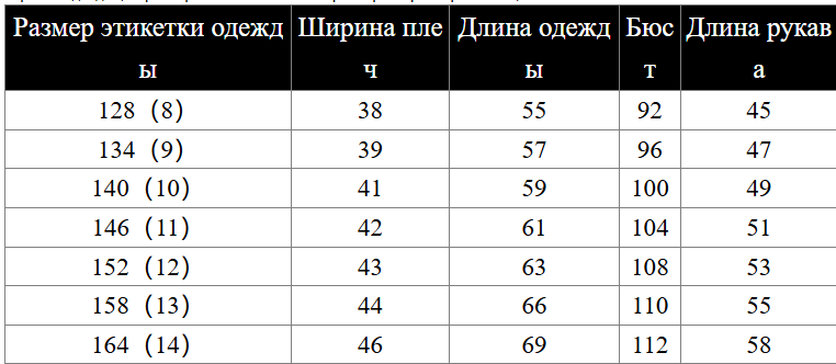 Размер: 128, 134, 140, 146, 152, 158, 164