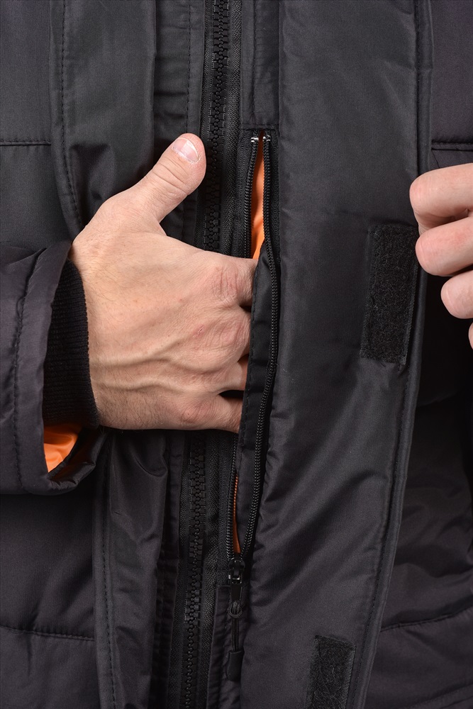 Застежка: молния Куртка мужская рабочая зимняя может использоваться как форма на улице либо в плохо отапливаемых помещениях. Подходит для мужчин и женщин, работников скорой помощи, медиков, рабочих на стройке или в производстве. Куртка теплая дополнена удобным капюшоном, вместительными карманами, а также рукавами с ветрозащитными манжетами. Застегивается удлиненная куртка на молнию. Имеет повышенный уровень ветро- и влагозащиты. Рабочая одежда зимняя соответствует высоким стандартам качества и безопасности. Куртка утепленная прямого силуэта, с притачной утеплённой подкладкой, горизонтальная стежка, воротник стойка, съемный капюшон. Утеплитель: 450 гр/м2. Центральная бортовая застежка на 2-х замковую молнию, закрытая двумя ветрозащитными планками, потайной карман на молнии. На груди прорезные карманы на молнии с кисточкой, на нижней части прорезной карман в шве, вход в карман закрывает клапан. По низу куртки с внутренней стороны ветрозащитная юбка.