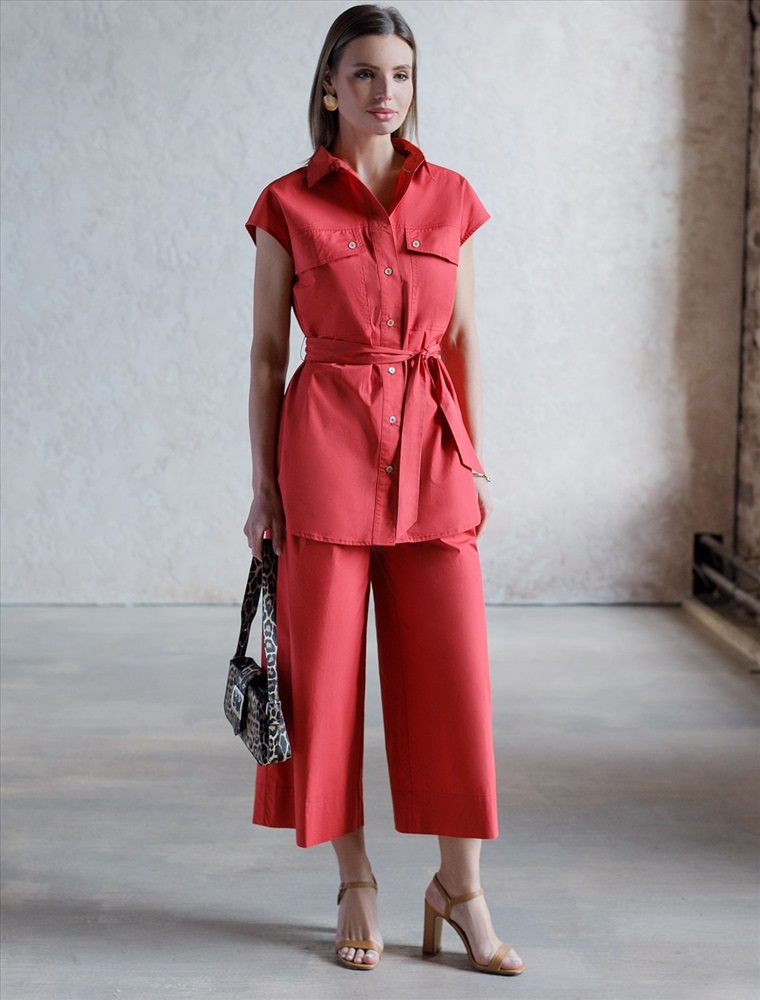 Размер товара на первом фото: 42 Кюлоты А-силуэта выполнены из легкого хлопкового поплина. Модель с карманами и средней посадкой. Натуральный состав ткани обладает высокой воздухопроницаемостью и гигроскопичностью. В изделии будет комфортно, даже в самое жаркое время года. Подходит для любой фигуры. Сочетается в костюме с блузкой D29.247 и D29.264.