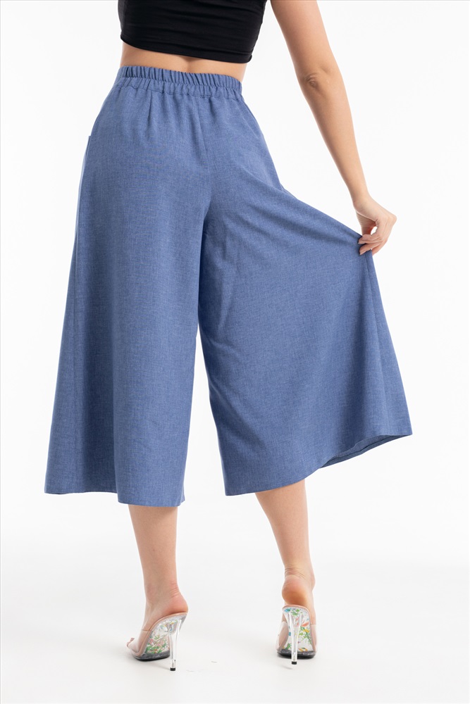 Застежка: молния | пояс | пуговицы Укороченные широкие брюки - кюлоты с карманами и резинкой на талии подойдут женщинам любой комплекции и возраста. Комбинируя с различным верхом и обувью можно кардинально менять образ от строгого делового до расслаблено неформального.