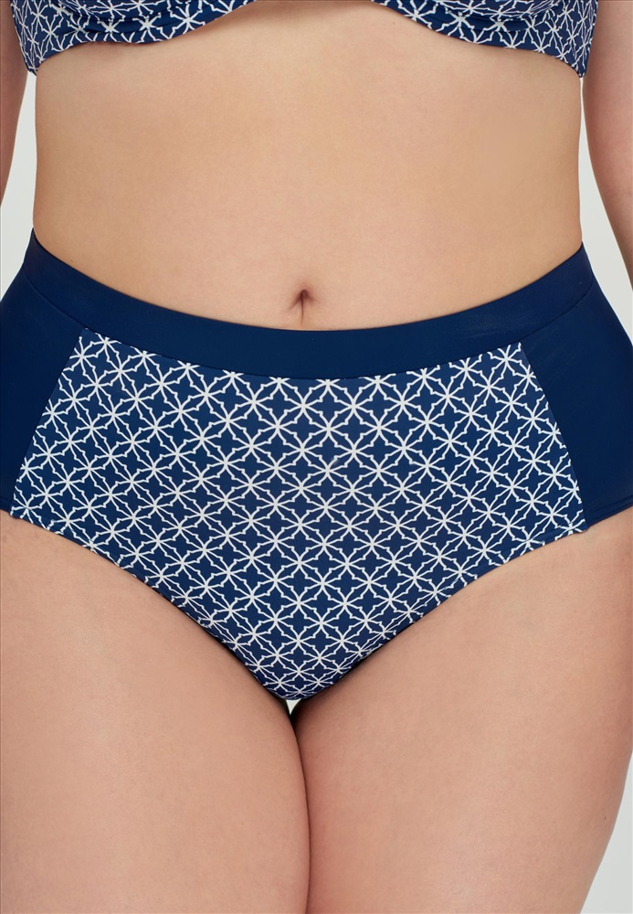 Брифы с завышенной линией талии на тонком поясе и симметричными фигурными вставками по бокам.