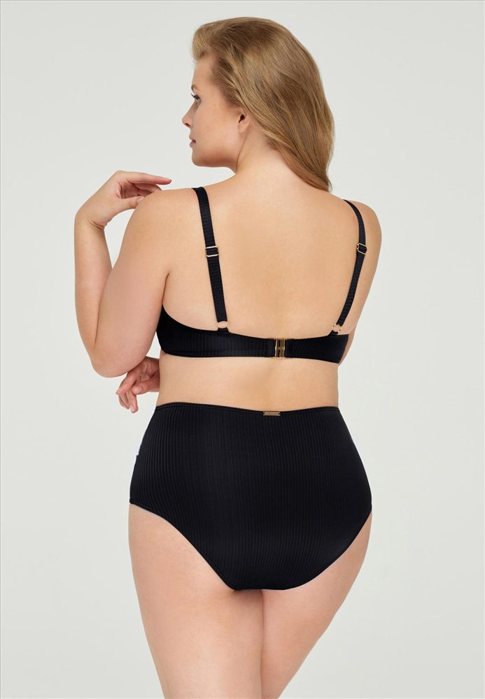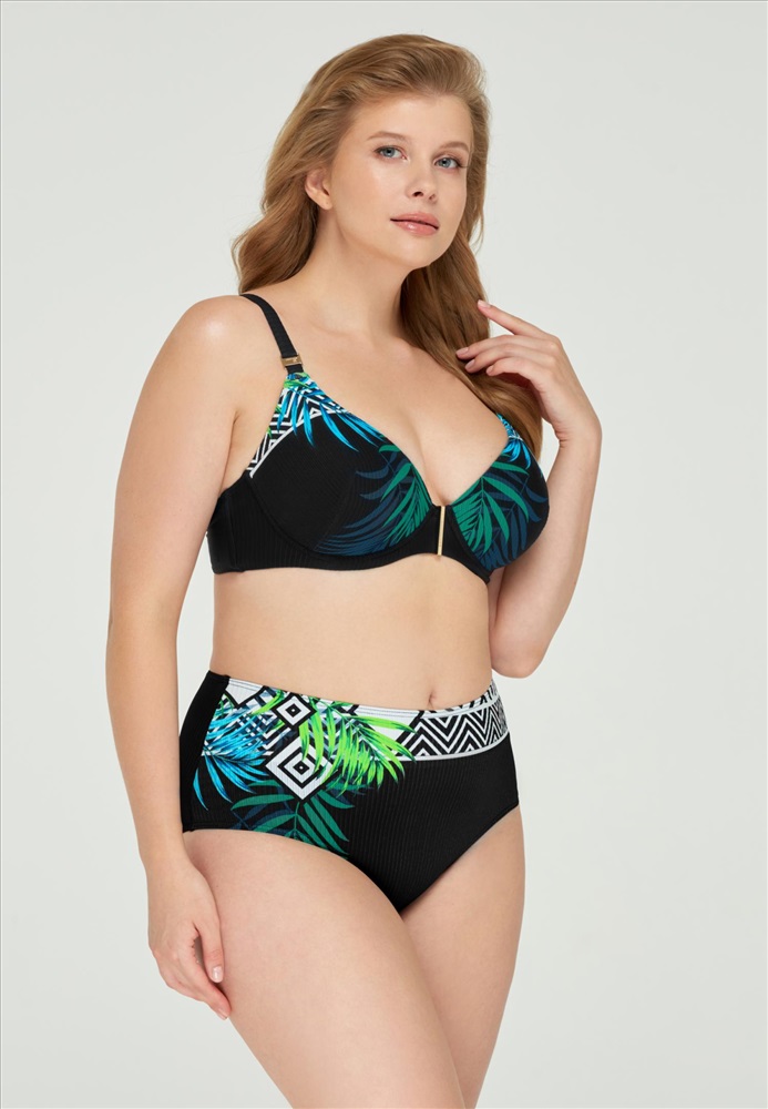 Формованная чашка на каркасной поддержке, со съемными корректорами «пуш-ап» для размеров 38-42СD. Регулируемые бретели. По центру аксессуар. На спине застежка. «Placement» принт.