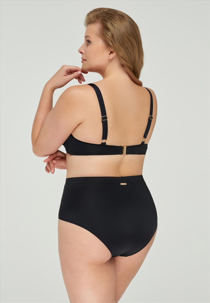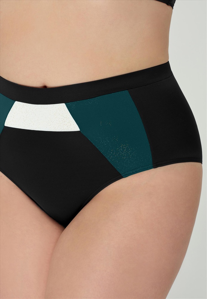Брифы с завышенной линией талии на тонком поясе и симметричными фигурными вставками по бокам на передней детали.