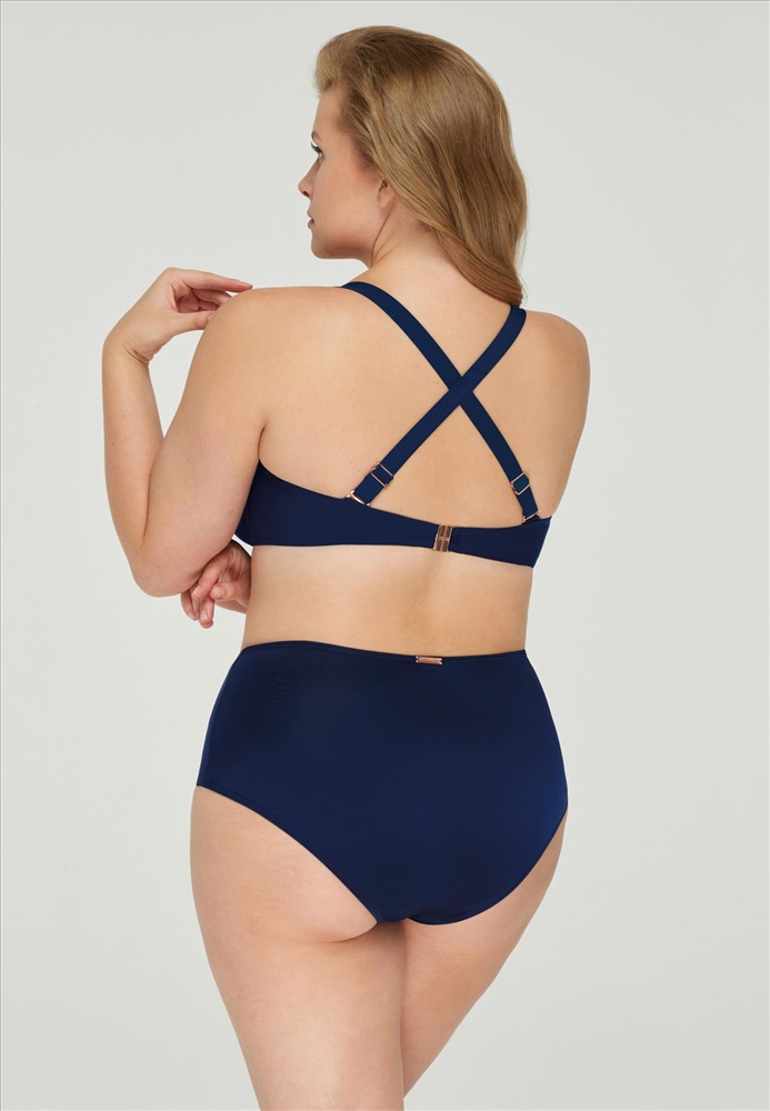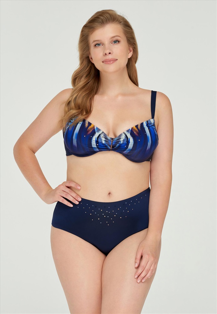 Мягкая чашка на каркасной поддержке. Регулируемая высота бока чашки. Регулируемые бретели. На спине застежка. Спереди россыпь кристаллов. По центру аксессуар.