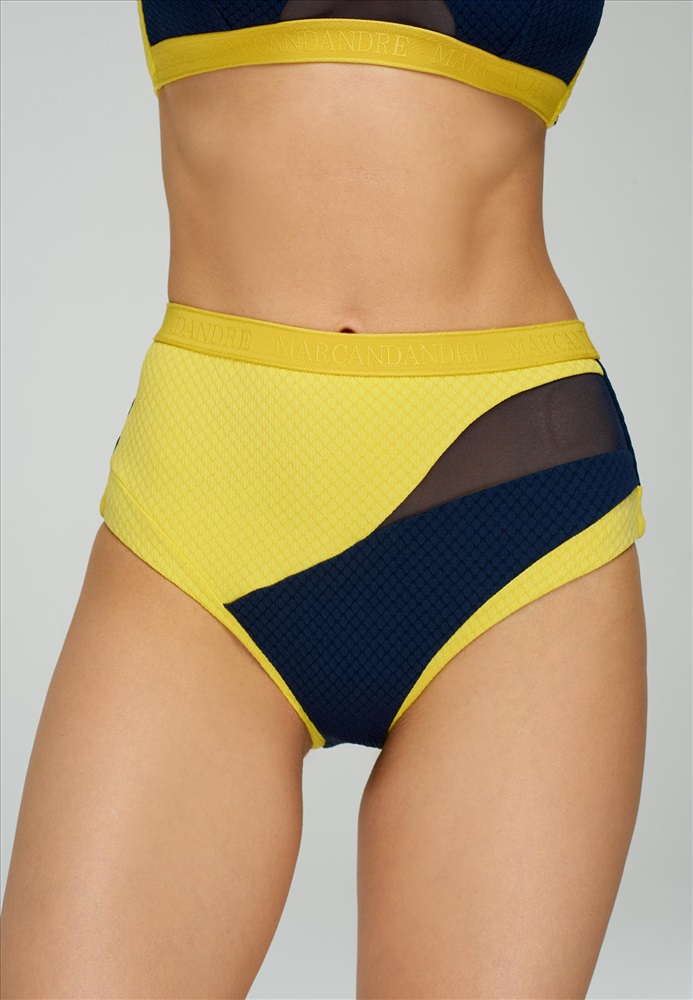 Брифы с завышенной линией талии. Широкий пояс из эластичной тесьмы с надписью MARC & ANDRÉ.