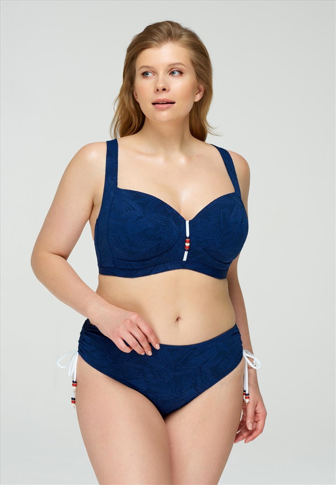Формованная чашка со съемными корректорами «пуш-ап». Регулируемые широкие бретели. На спине застежка.