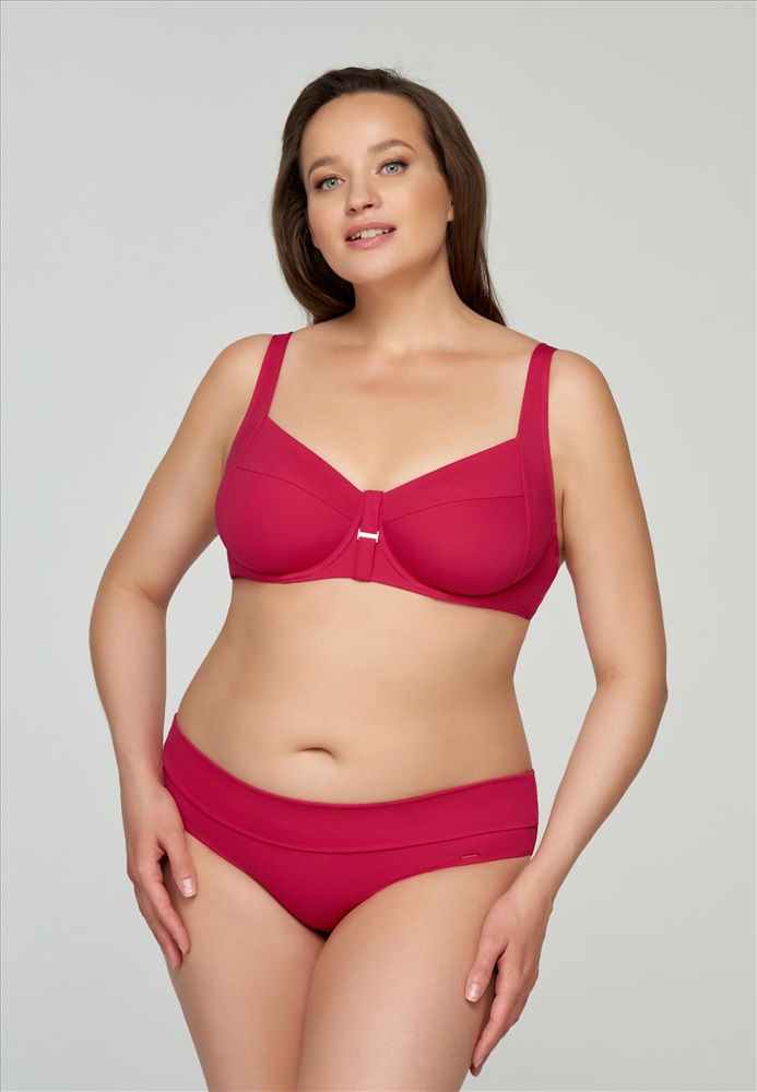 Мягкая чашка на каркасной поддержке. Регулируемые бретели. На спине застежка.