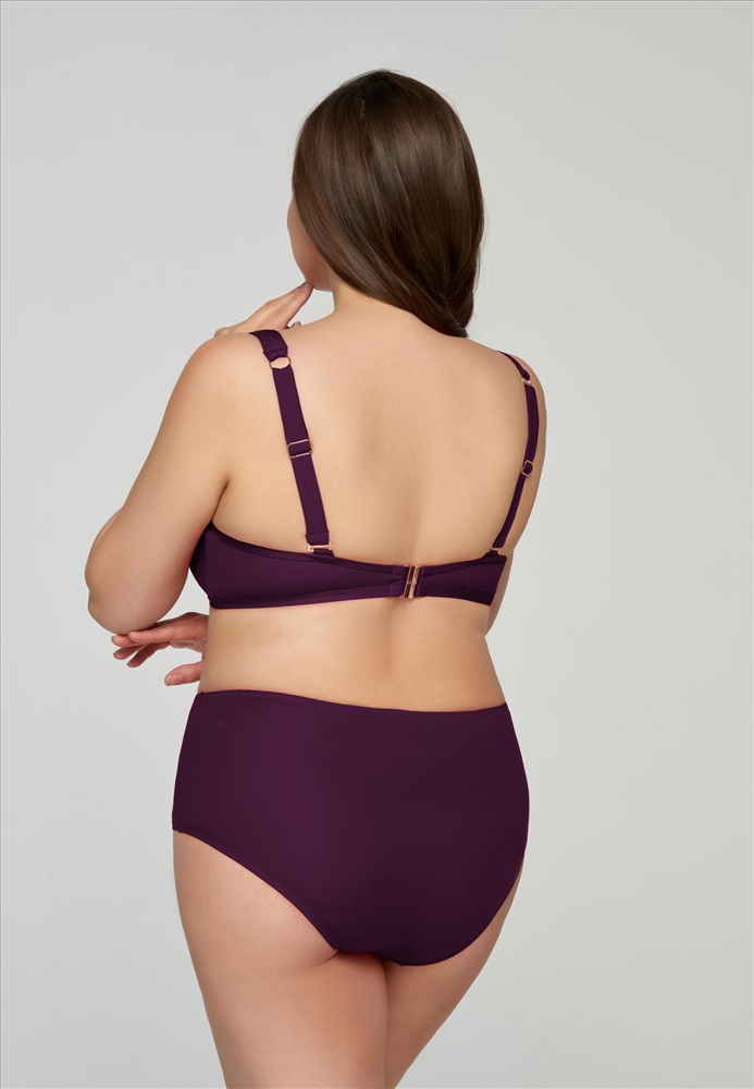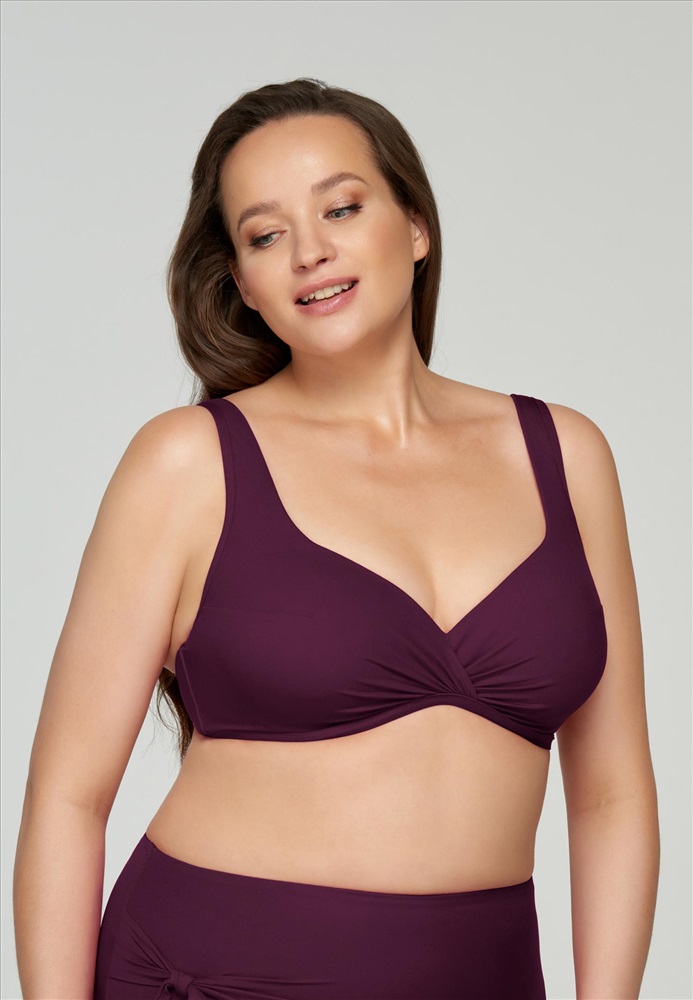 Формованная чашка на каркасной поддержке. Подойдет для обладательниц пышных форм. Углубленная линия декольте. Широкие бретели с поролоновой вставкой. На спине застежка.