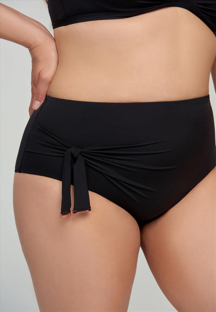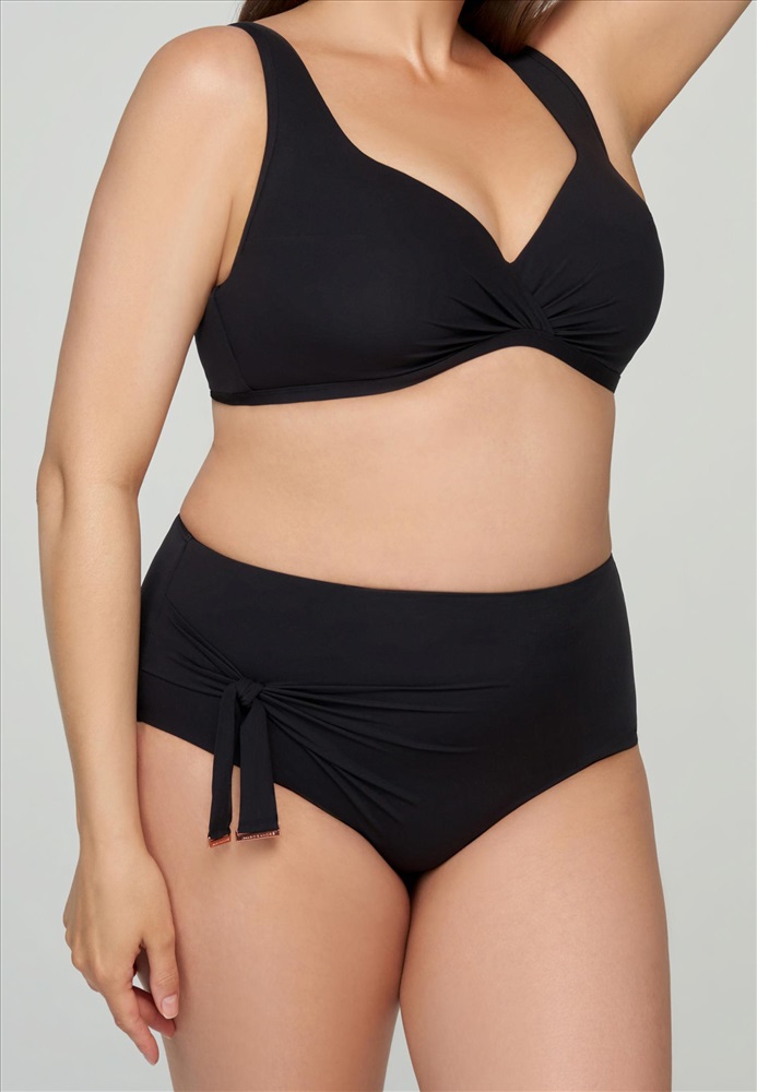 Брифы с завышенной линией талии. Асимметричная драпировка со съемным бантом.