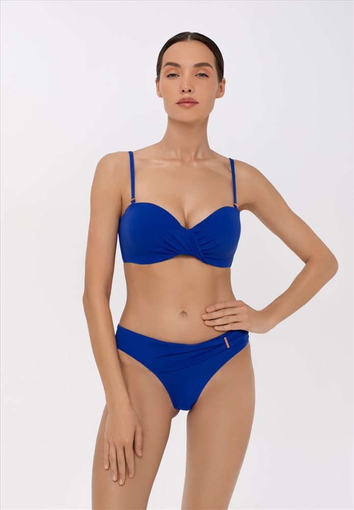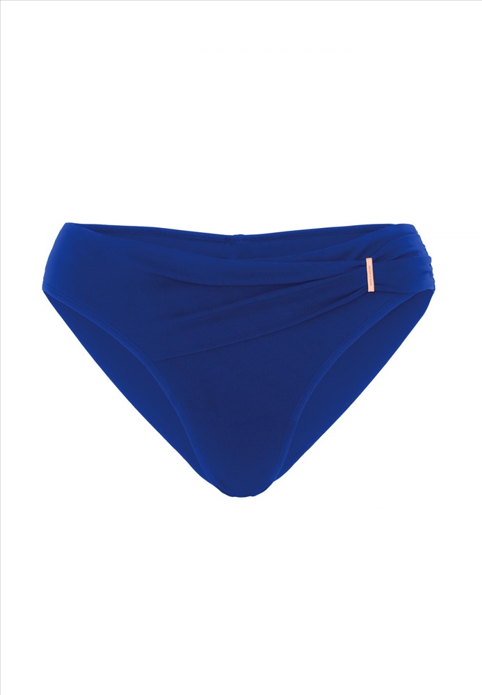 Брифы-бразилиана со средней линией талии. Асимметричная драпировка спереди с аксессуаром.