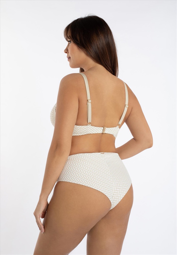 Брифы со средней линией талии. На передней детали декоративный пояс с аксессуаром. Вертикальный шов на задней детали. Обработка задней детали в подворот с чистым краем.