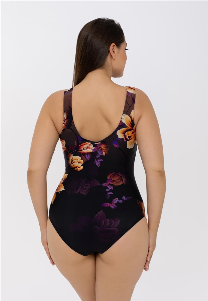 Купальник с тонкими вшитыми корректорами и поддерживающей резинкой под грудью. Подойдет для обладательниц пышных форм. Открытая спина. По передней и задней детали «Placement» принт.