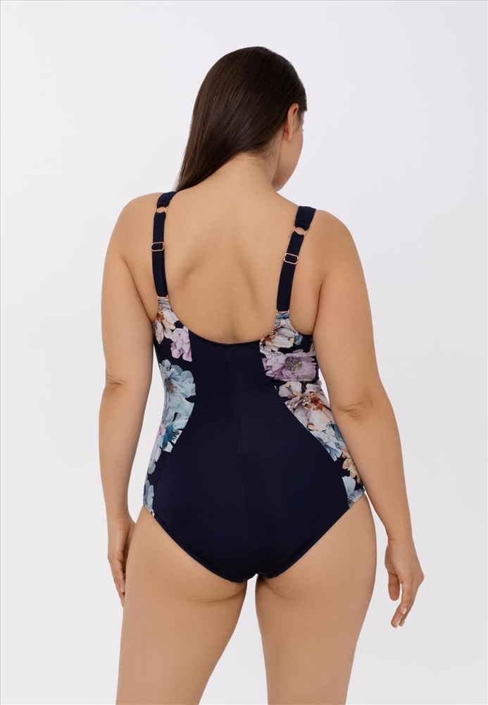 Купальник с формованной чашкой на каркасной поддержке. Углубленная линия декольте. Широкие регулируемые бретели с поролоновой вставкой. Круглая спина. «Placement» принт.