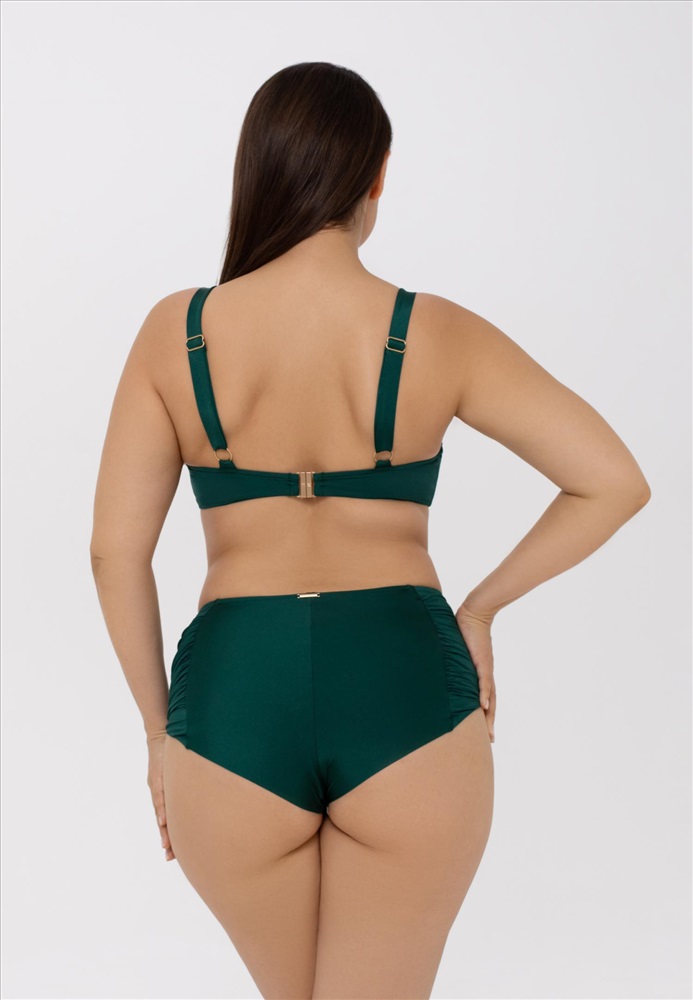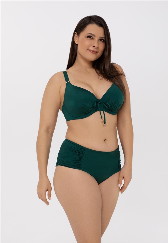 Формованная чашка на каркасной поддержке. Подойдет обладательницам пышных форм. Регулируемые бретели. Декоративные завязки между чашками. На спине застежка.