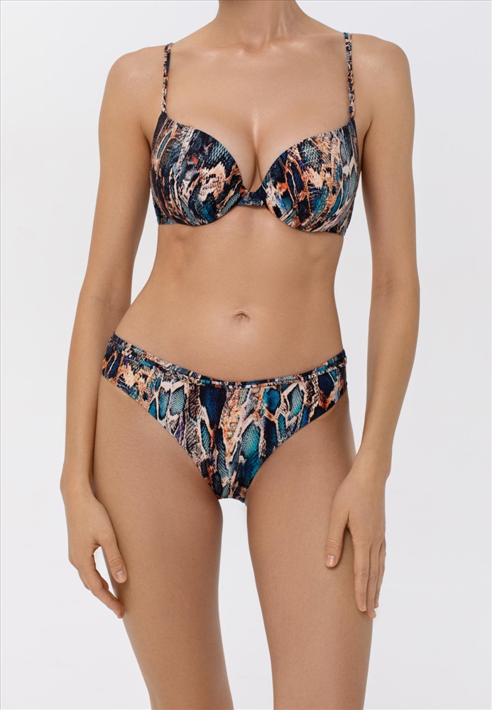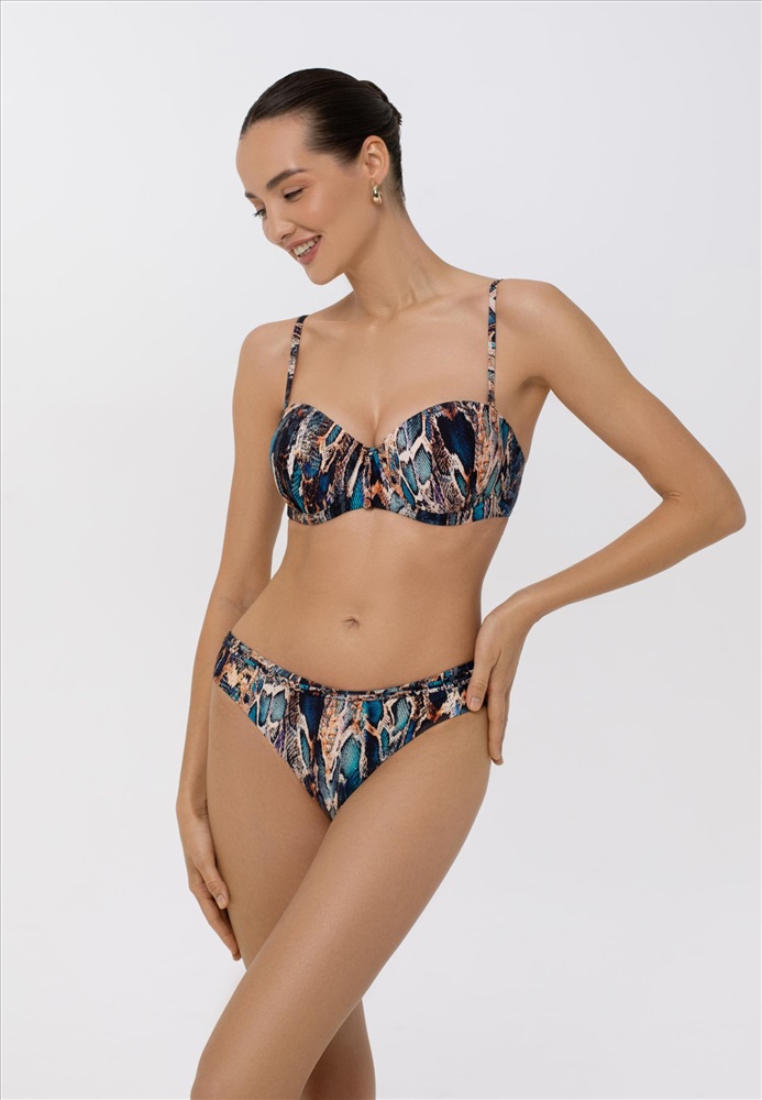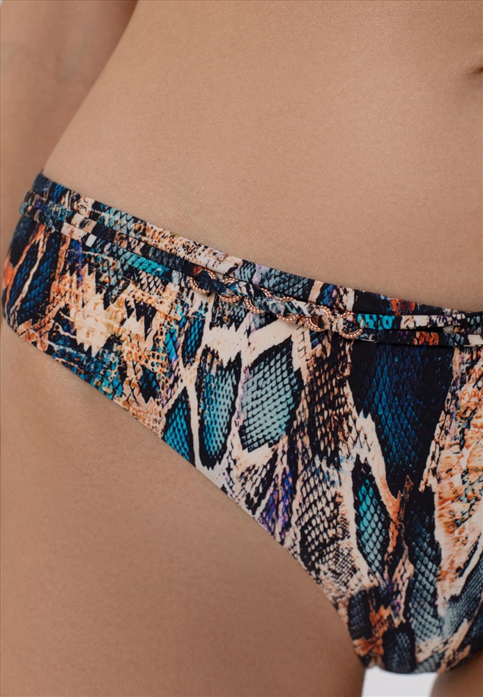 Брифы со средней линией талии. По передней детали тонкий декоративный пояс с аксессуаром.