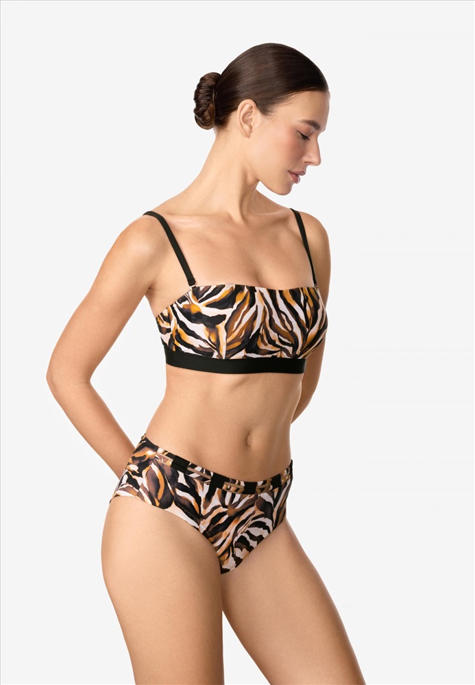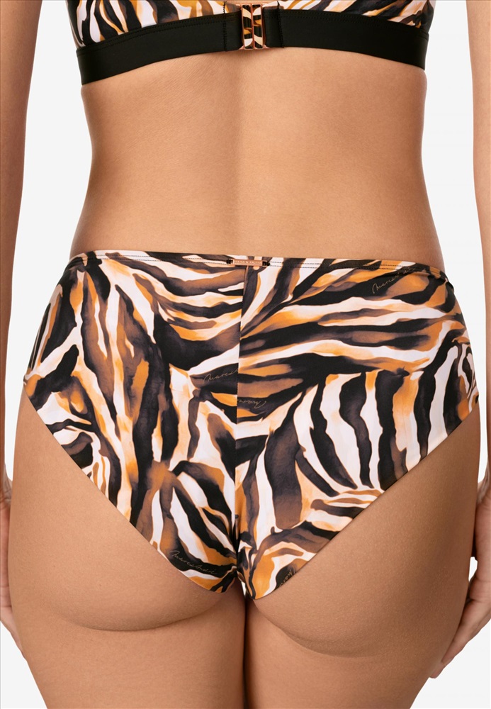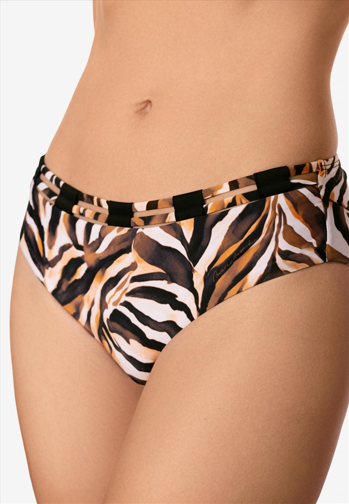 Брифы со средней линией талии. Задняя деталь выполнена в подворот с чистым краем. Спереди по поясу отделка из декоративных шнуров.