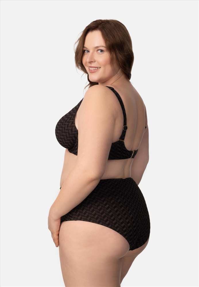 Мягкая чашка на каркасной поддержке. Подойдет обладательницам пышных форм. Бретели регулируются по длине. Передняя часть изделия дополнена аксессуаром. На спине застежка.