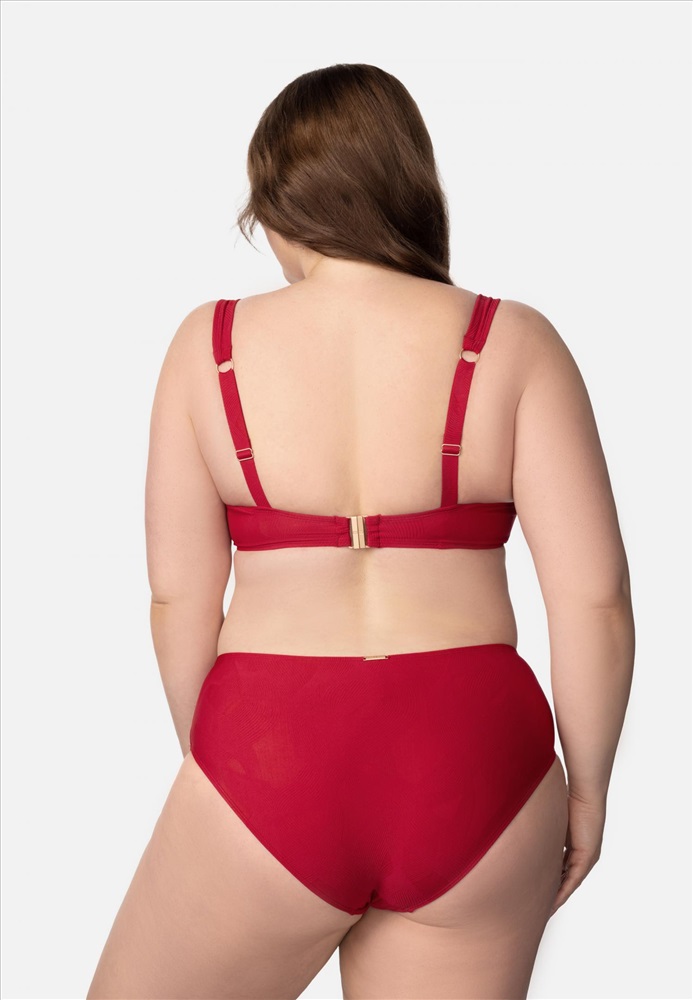 Мягкая чашка на каркасной поддержке. Внутри чашка дублирована эластичной сеткой для лучшей поддержки. По центру между чашек аксессуар. Широкие регулируемые бретели. На спине застежка.