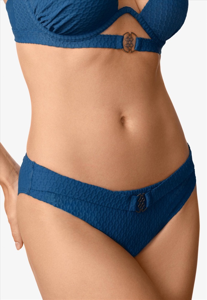 Брифы со средней линией талии. На передней детали декоративный пояс с аксессуаром.