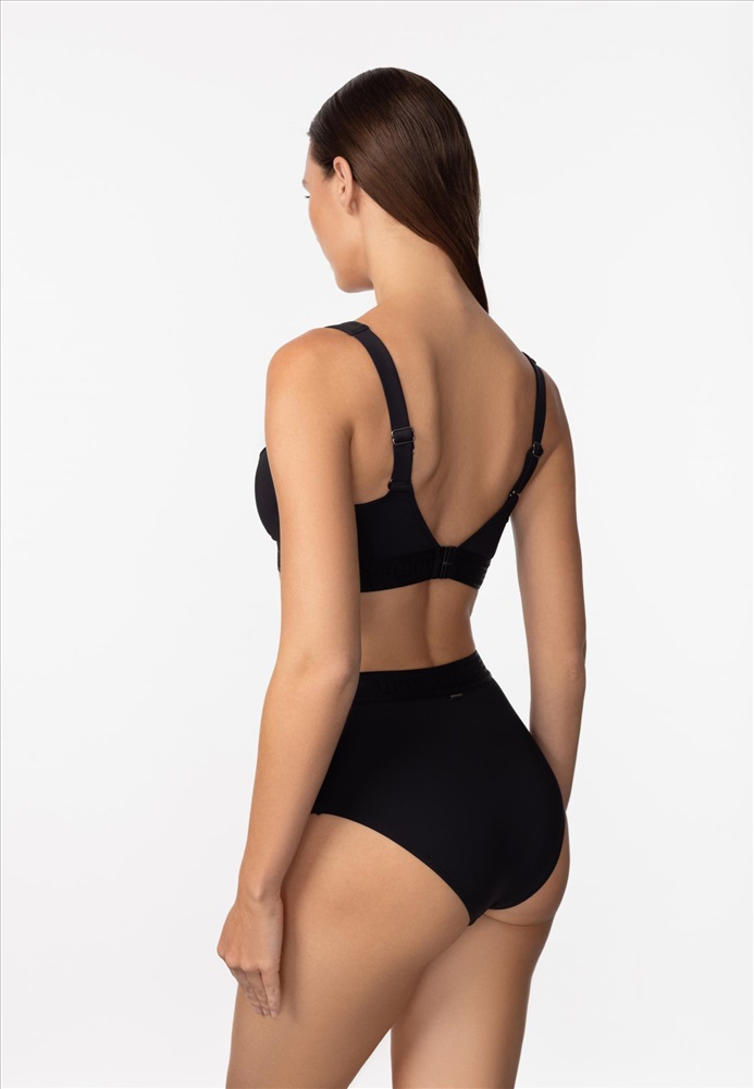 Топ на каркасной поддержке с тонкими съемными корректорами. На спине застежка. Съемные широкие бретели декорированы аксессуарами.