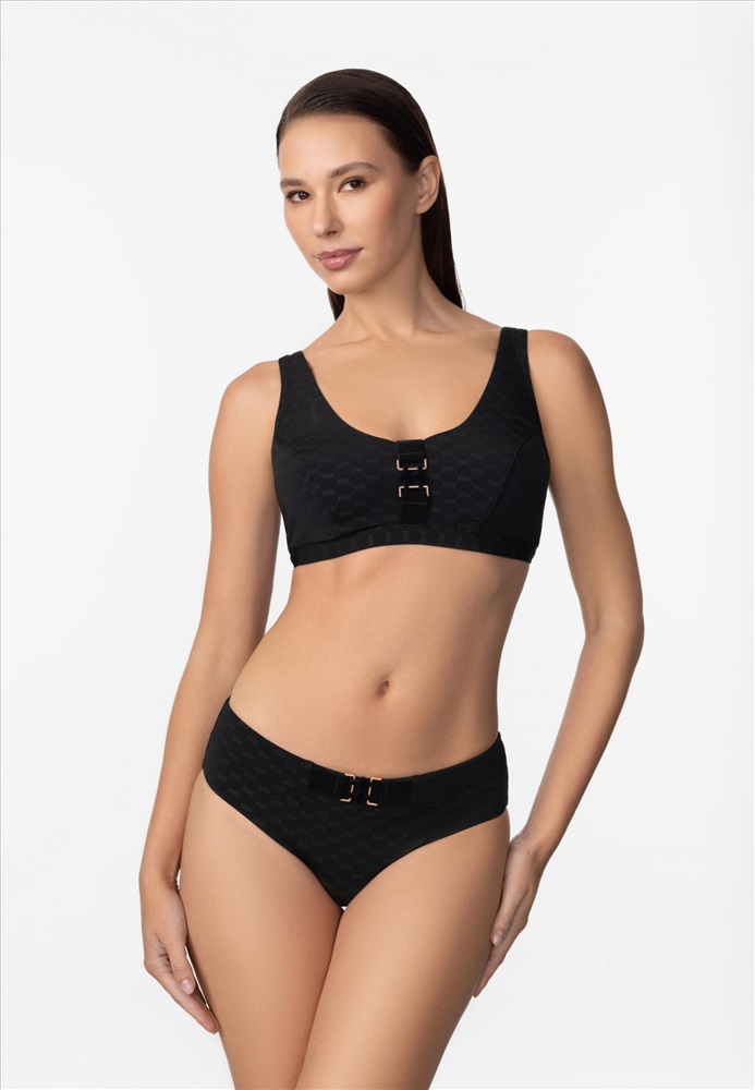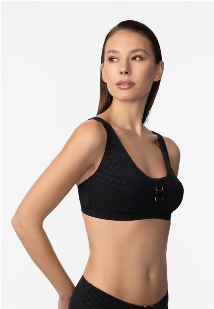 Мягкая чашка на каркасной поддержке. Подойдет для обладательниц пышных форм. По центру между чашек аксессуар. Регулируемые широкие бретели. На спине застежка.