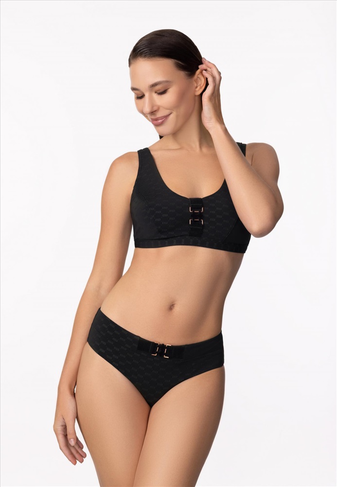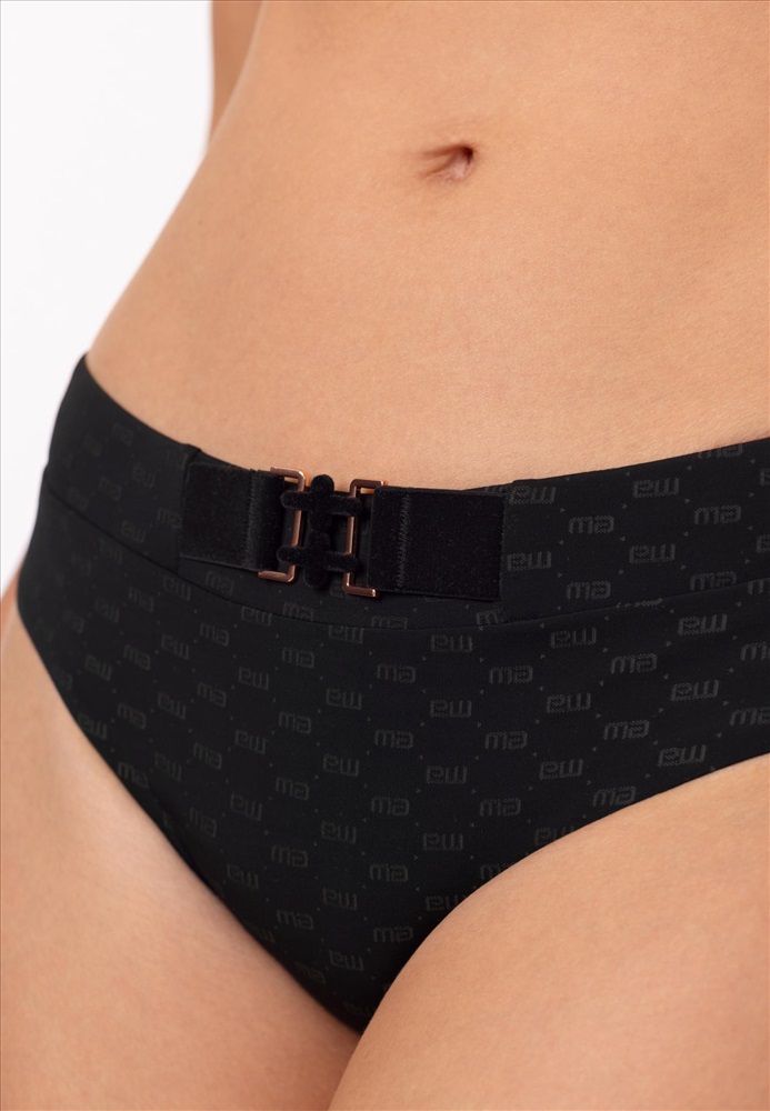 Брифы со средней линией талии. Эластичный пояс с аксессуаром на передней детали.