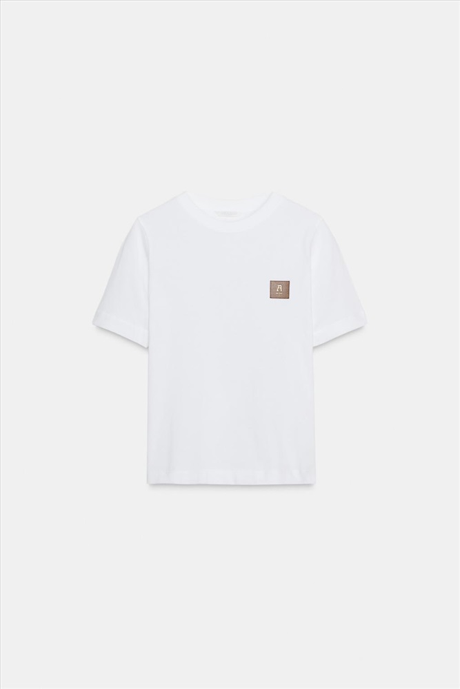 T-shirt made in cotton yarn. Featuring a round neck and short sleeves. Contrasting ZA label detail on the chest. Straight hem.