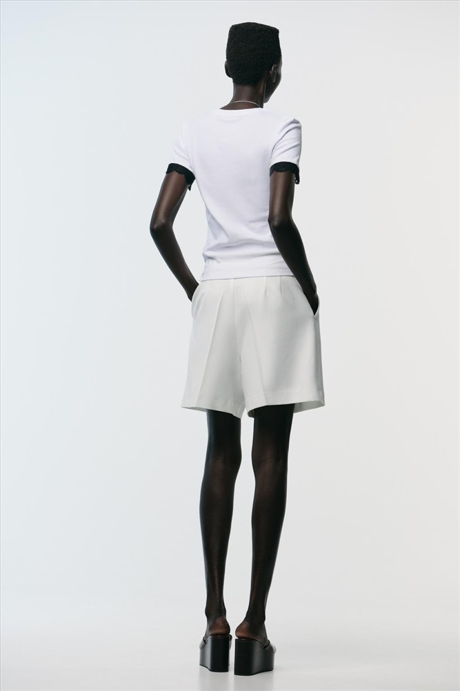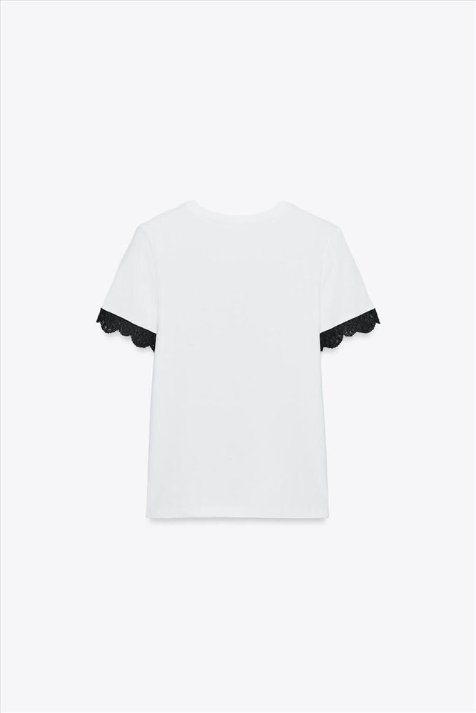 T-shirt made from a cotton blend. Featuring a round neck and short sleeves. Lace trim detail on the sleeves.
