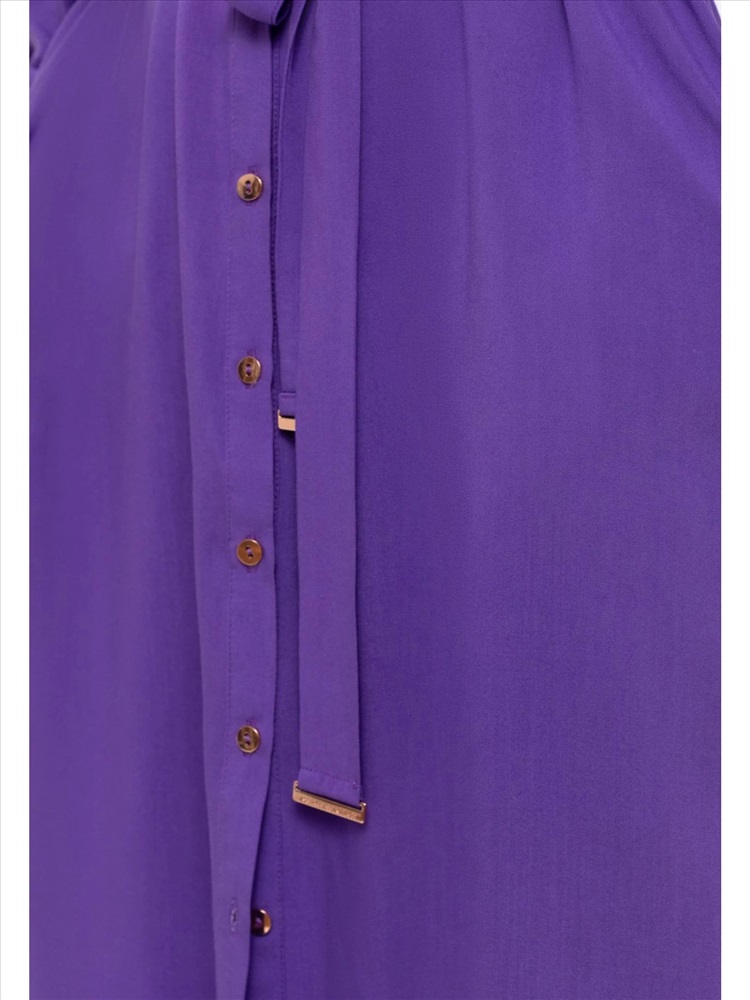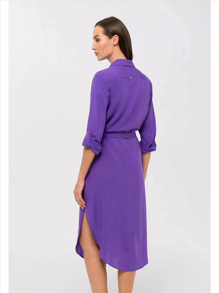 Платье-рубашка макси свободного прямого кроя на пуговицах. Длина ниже уровня колен. Декоративный пояс. Длина рукава регулируется патой с застежкой. Боковые карманы.